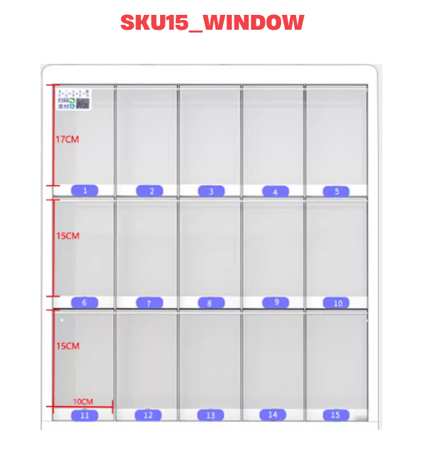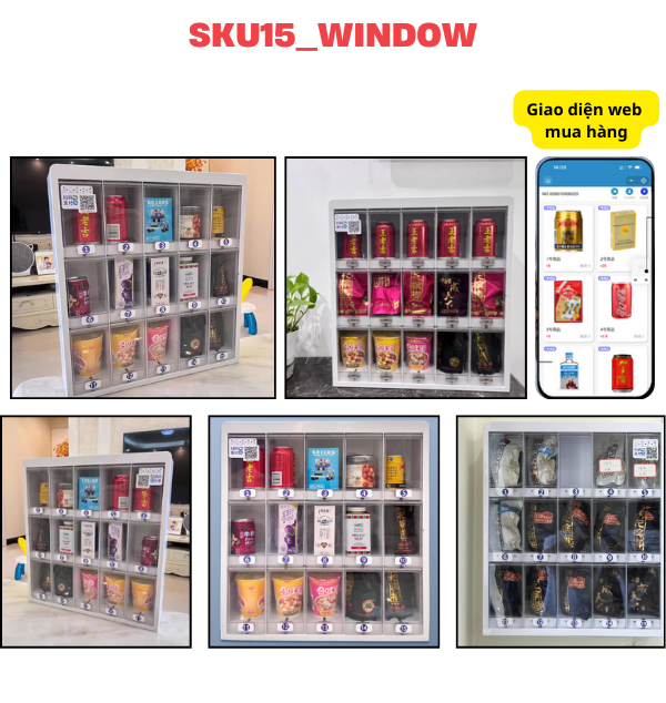 Dòng máy SKU15 Window phù hợp chứa các mặt hàng kích thước nhỏ và trung bình: