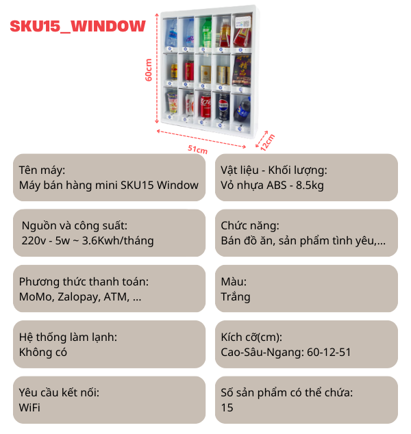 Thông Tin Chi Tiết Máy Bán Hàng Mini VNVending SKU15 Window