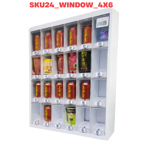 VNVENDING SKU24-Window 4x6 là dòng máy bán hàng mini dạng tủ nhiều ngăn,