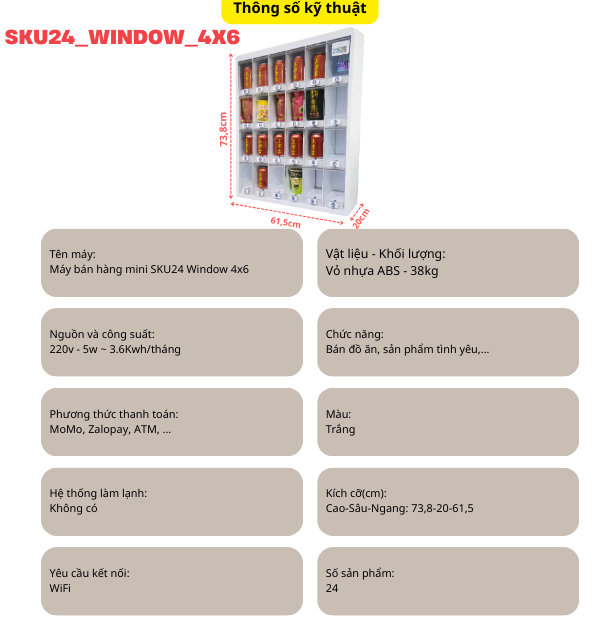 Thông Tin Chi Tiết Máy Bán Hàng Mini VNVending SKU24-Window 4x6