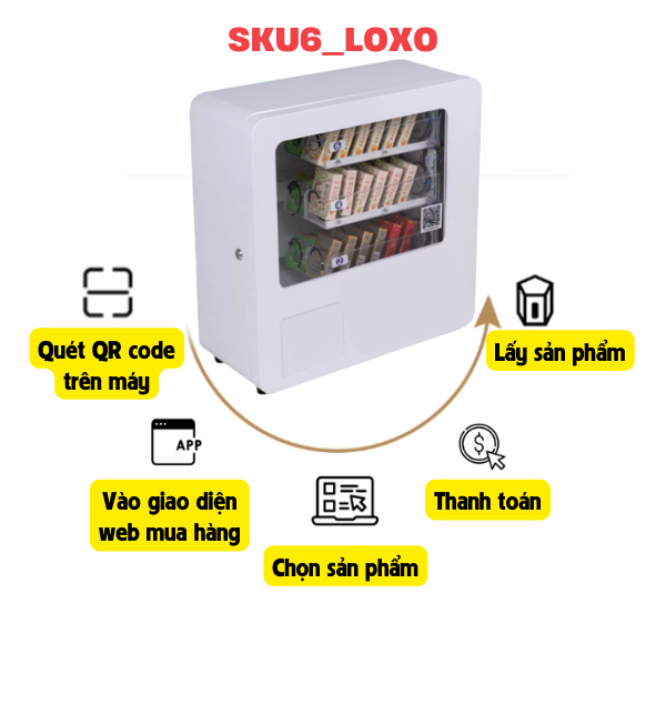 Máy bán hàng tự động mini VNVENDING-SKU6-loxo là dòng máy chuyên dụng cho khách sạn, homestay, chung cư, ...